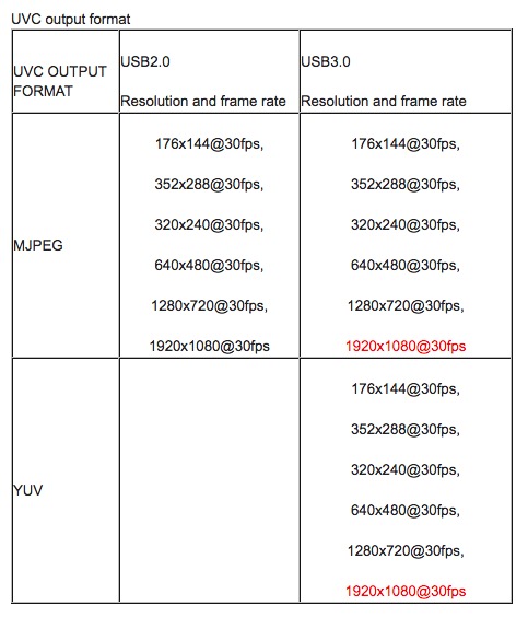 USB2.0 Mode : up to 1920x1080p 30fps MJPG