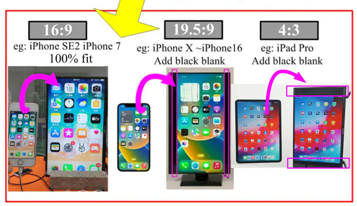 It resolves the issue of black borders caused by projecting a smartphone screen with a different aspect ratio onto a TV.