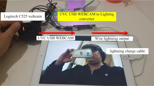 Example: USB camera USB connection and power input (5V2A) ⇒ UVC lightning board ⇒ lightning cable (ipad, iphone)